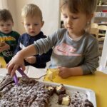 Pyragų parduotuvėje mokėmės skaičiuoti, sudėti, atimti. Lavinome bendravimo, derėjimosi meno, savarankiškumo, verslumo įgūdžius.