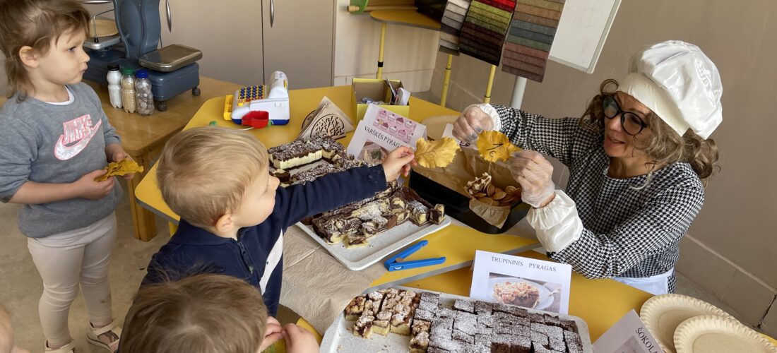 Lopšelyje-darželyje „Berželis“ atsidarė kvapniausia pasaulyje pyragų parduotuvė. Visi rinkosi tik pačius skaniausius, gražiausius. Dėjosi į krepšelius ir pirko patys.