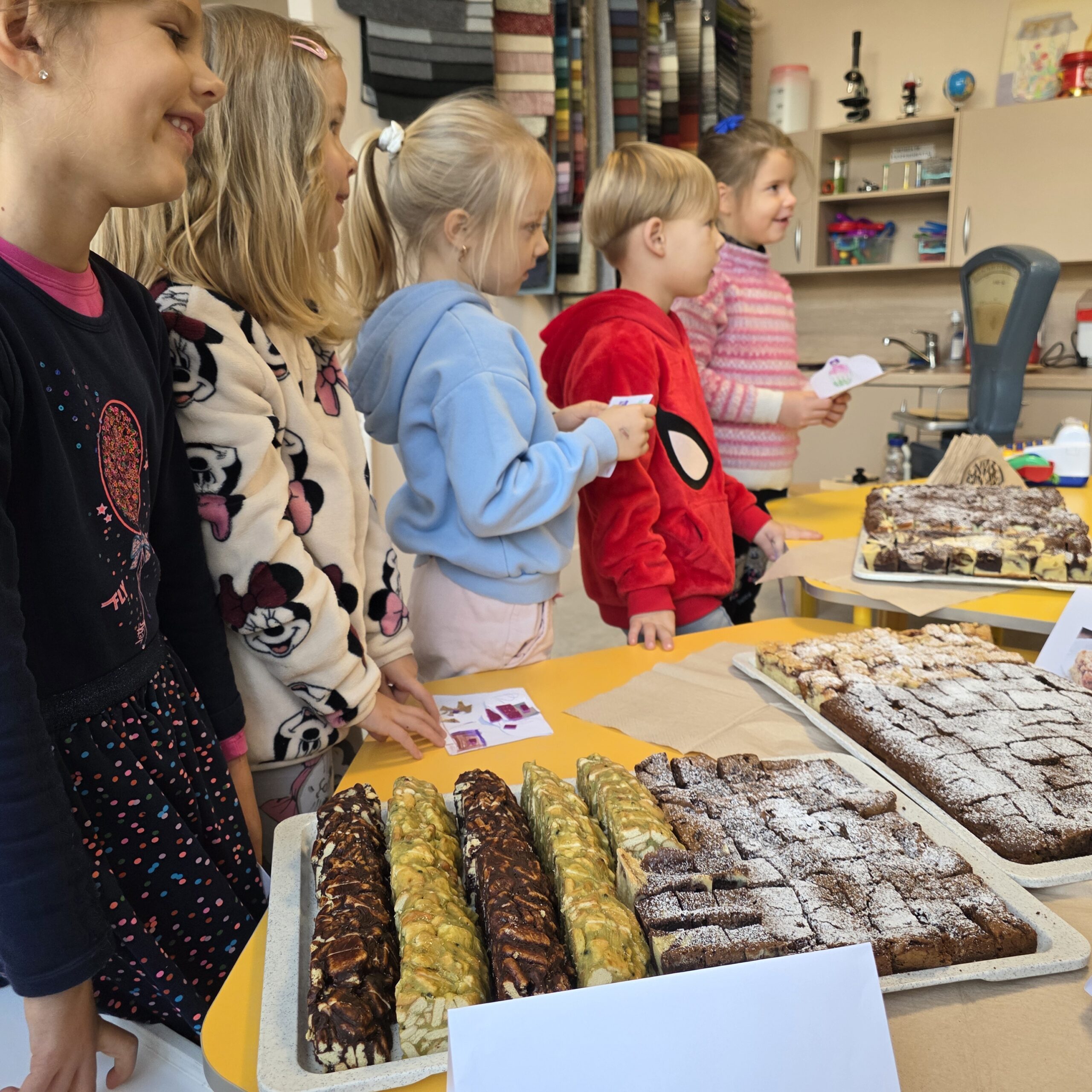 Lopšelyje-darželyje „Berželis“ atsidarė kvapniausia pasaulyje pyragų parduotuvė. Visi rinkosi tik pačius skaniausius, gražiausius. Dėjosi į krepšelius ir pirko patys.