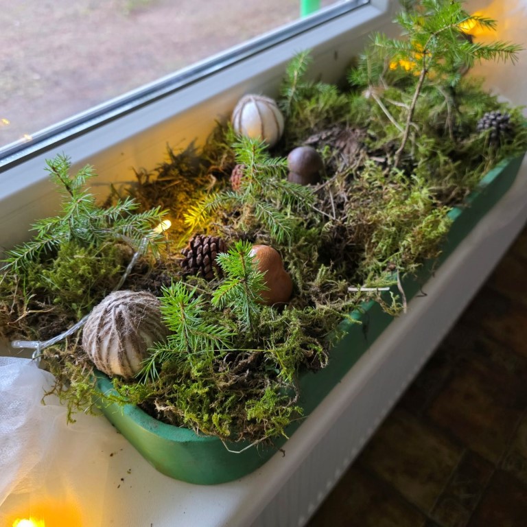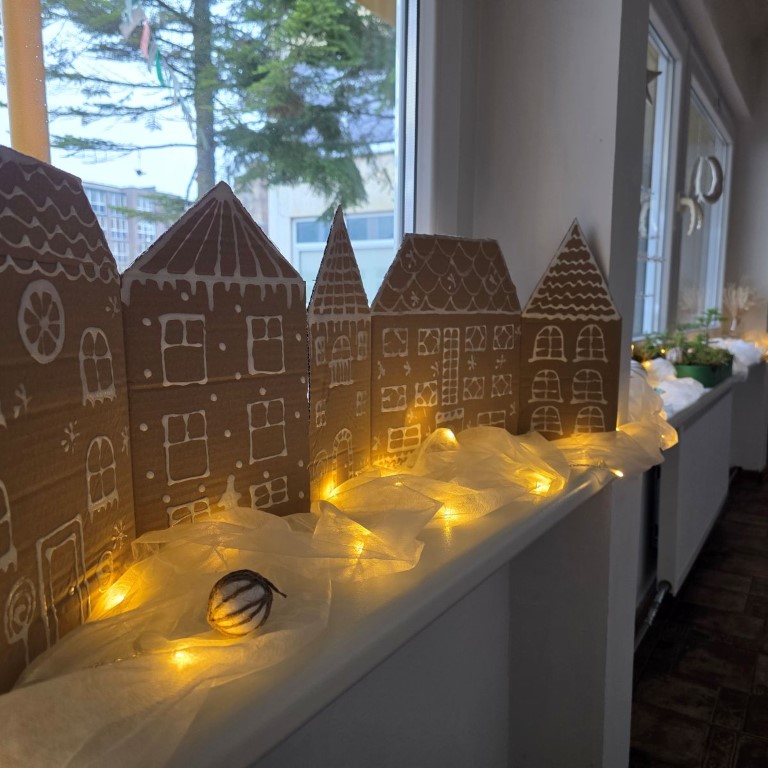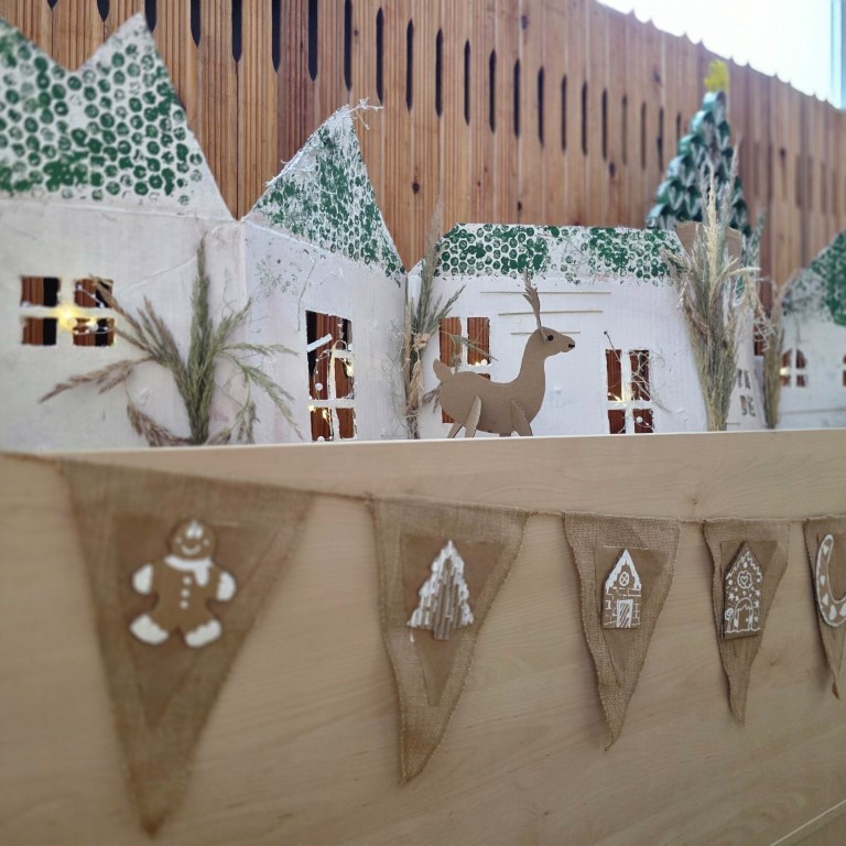 Kaip ir pernai, šiais metais mūsų šventinėje puošyboje, dominuoja tvarumas, natūralumas ir gamtos grožis. Naudojame šiltas spalvas, kartoną ir gamtines priemones (šakeles, kankorėžius ir pan.). Mums svarbu ne tik pasipuošti, bet ir ugdyti atsakingumą bei meilę gamtai.