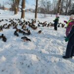 Skubėjome aplankyti apsnigtus parkus ir tyvuliuojančius vandens telkinius, palikdami vaišių tiek paukščiams, tiek žvėreliams.