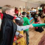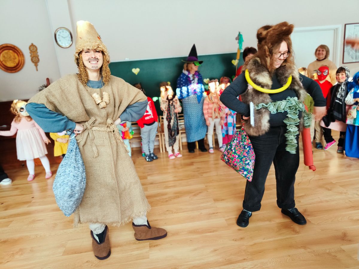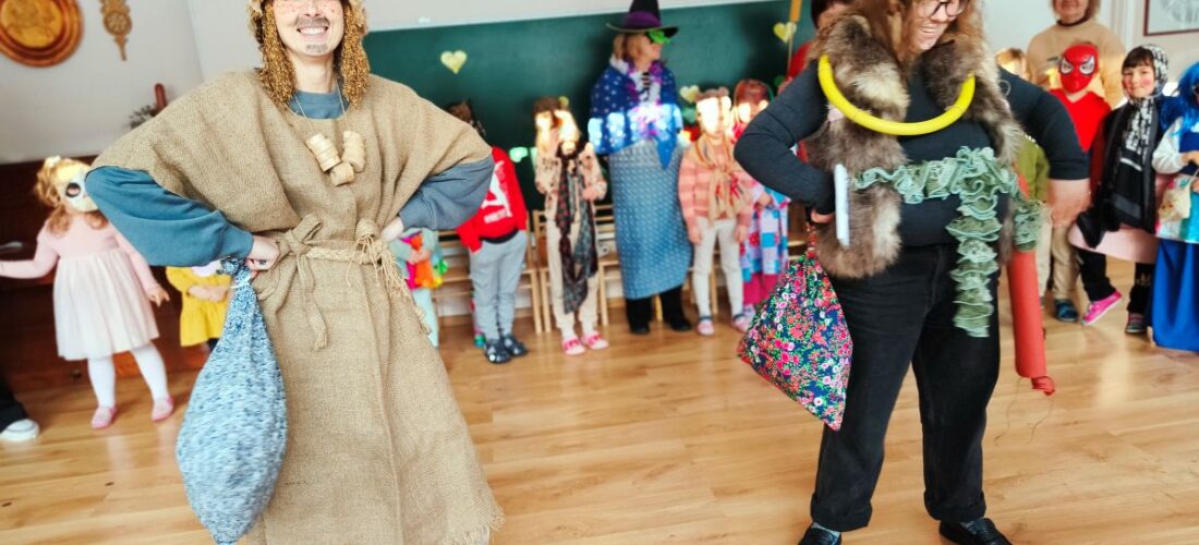 Blynai, kakava ir kalnas triukšmo – taip Berželyje vijome žiemą! Nors aštrus šaltukas pakišo koją triukšmingai ir aktyviai švęsti lauke, nuotaika išliko karšta. Matuodamiesi raganų ir velnių kaukes, prisijaukinome baimes, o švęsdami Kanapinio pergalę prieš Lašininį – pasiryžome dar greičiau augti ir daugiau judėti. Žemę žadinome trepsėjimu ir dideliu triukšmu, o pavasarį kvietėme smagiais šokiais, dainomis ir  juoku.